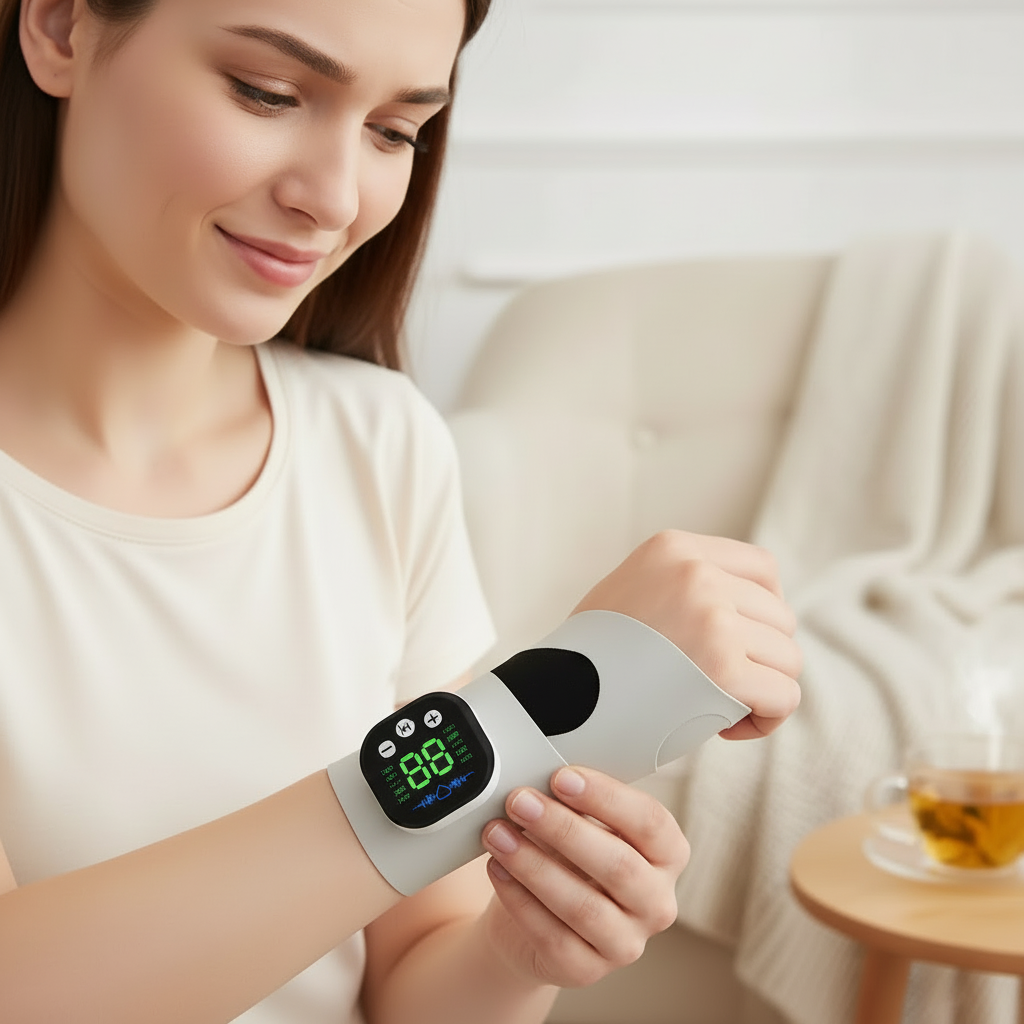 "Ero stanca delle fasce rigide che mi bloccavano il pollice e il polso. Questo è leggero e mi lascia libera. Il supporto è morbido, ma la vibrazione con il calore è potentissima. Lo metto per 15 minuti prima di iniziare l'allenamento in palestra e sento subito la mano molto più leggera e stabile. Finalmente, un supporto che non è una prigione!"